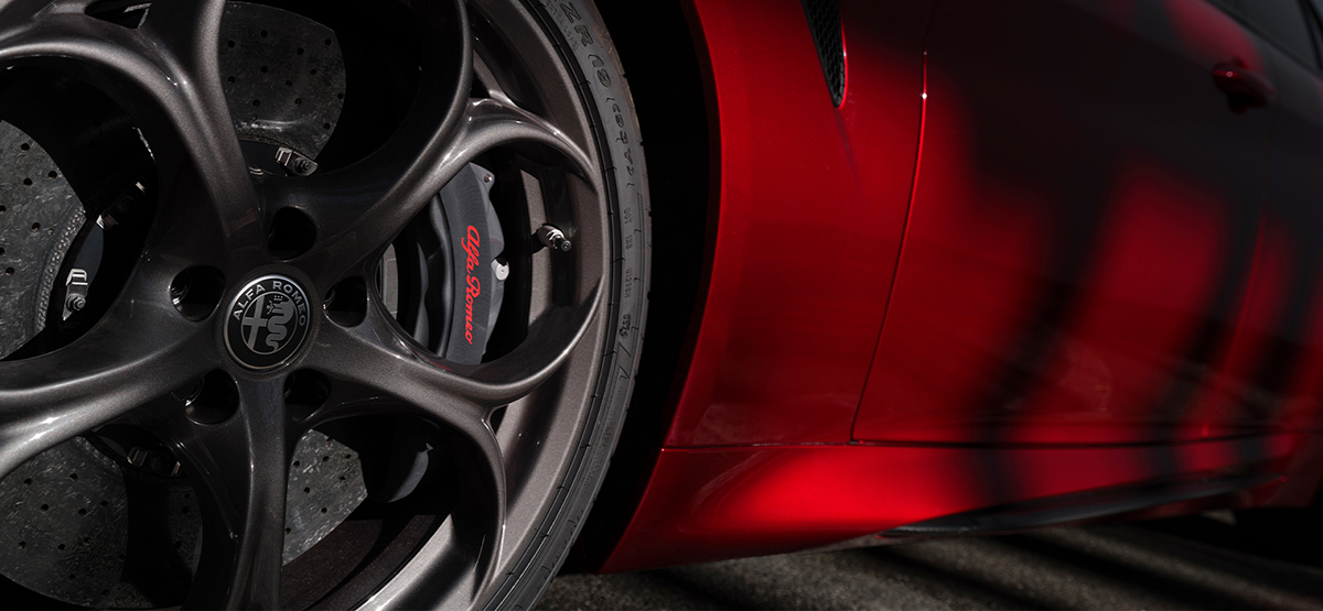 ・Brembo製ブレーキキャリパー(アノダイズドブラック、Alfa Romeoロゴは赤文字)
