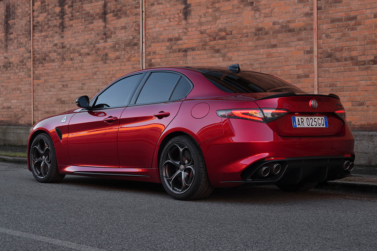 「ジュリア コレッツィオーネ レッド」は、黒に迫る深みのある濃赤色が特徴で、スポーツセダンの造形を際立たせ、精悍な印象を与える。