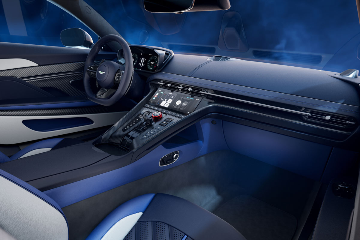 フロントに搭載されるV型8気筒4.0Lツインターボエンジンは、標準のDB12より20psアップされ、最高出力700psを発生。最大トルクは800Nmで変更はない。最高速度もDB12と同じ325km/hとなっているが、ローンチコントロールシステムとトランスミッションの変速速度をチューニングすることで、ギアチェンジに要する時間を50%以上短縮し、0-100km/h加速はDB12よりも0.1秒短い3.4秒となっている。