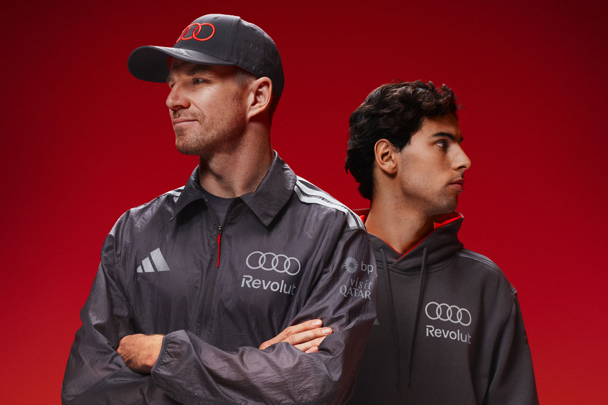 「adidas×Audi Revolut F1 Team」は、公式のチームウェアとライフスタイルを彩るファンウェアコレクションの2ラインを展開。どちらのラインアップも、品質、快適性、デザインにおいてプレミアムな基準をクリアしている。