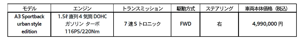 アウディ ジャパンは2025年12月9日、プレミアムコンパクト「A3 Sportback」の限定モデル「A3 Sportback urban style edition」を発売した。500台限定で販売される。