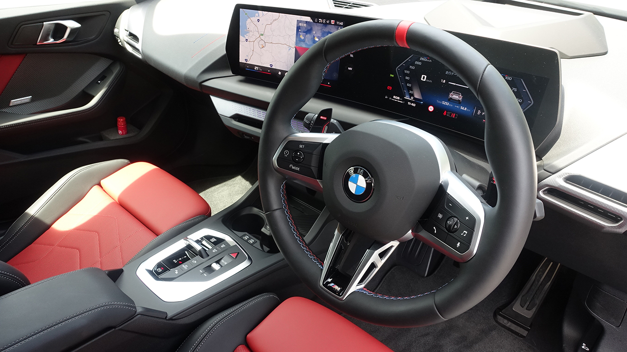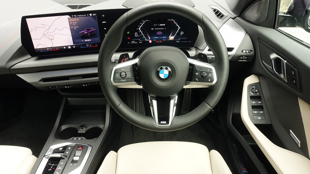 M235xDriveの出力は221kW(300ps)/5750rpm、最大トルク400Nm/2000-4500rpmで、左側のパドルを1秒間引くと全てのパワートレインとシャシーシステムが最もスポーティな設定に切り替わり、この「Mスポーツ・ブースト」は10秒間のカウントダウンと共にパワーが発揮される。