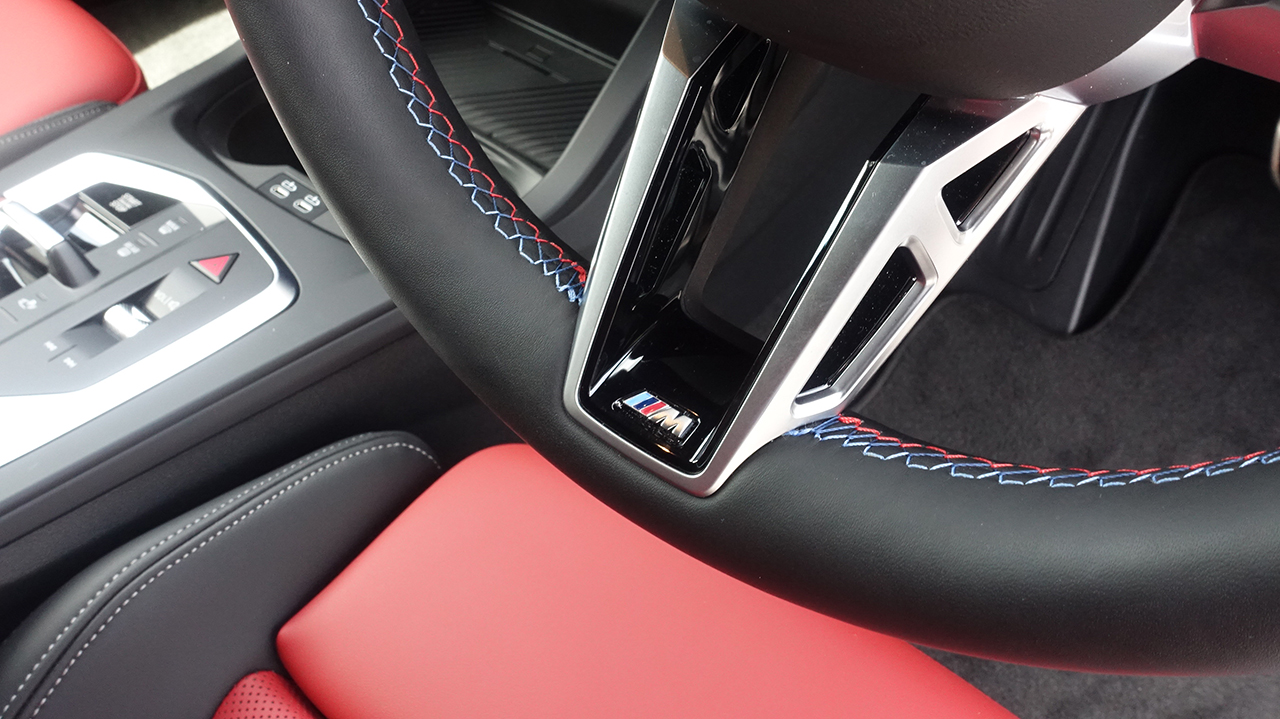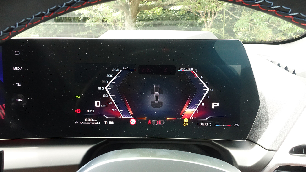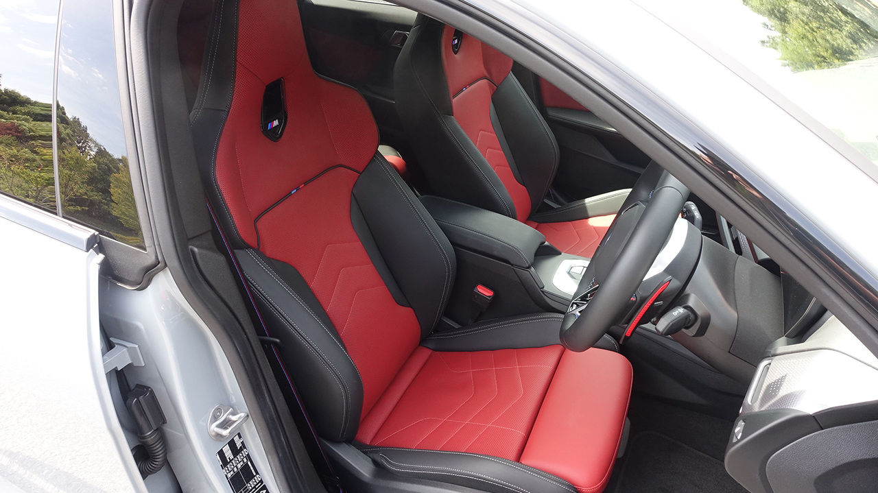 そしてブレーキキャリパーはMのロゴが入った赤いキャリパーが備わり、ブレーキディスクはホイールサイズいっぱいの大径ローターが装備されている。それだけでどれだけのストッピングパワーが出せるのか分からないながらも、安心材料として目に映る。