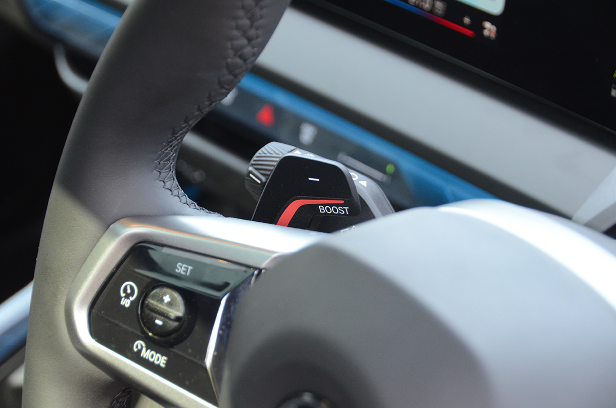 ステアリングはボトムをフラットにしたスポーツハンドルで握りはかなり太い。太さからくるスポーティな印象は今も変わらず好印象だ。また左側のパドルシフトには「Boost」があり、10秒間だけフルトルクの加速を楽しむことができる。ひとつの遊び心だ。