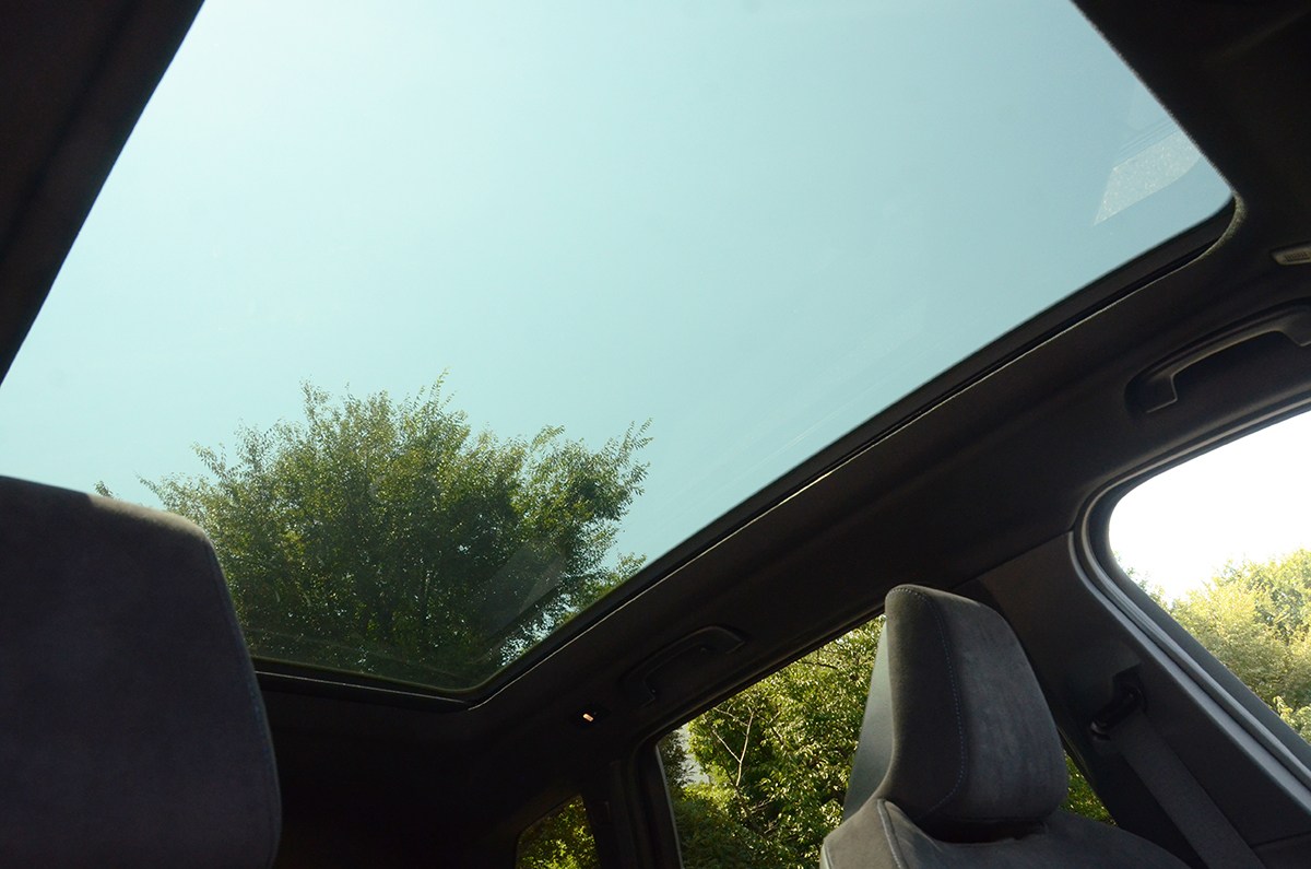 試乗車にはオプションの「パノラマ・ガラス・サンフーフ」が装備されていたが、ガラス面積が大きく、前席ではあまり感じることはないが、後席だとオープンカー的な開放感を得ることができるサイズだ。