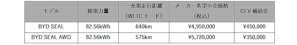 装備の一部をアップデートしたシールは、後輪駆動と4輪駆動の2モデル構成で、それぞれの希望小売価格は、後輪駆動モデルが495万円(税込)、4輪駆動モデルのシール AWDを572万円(税込)とし、後輪駆動モデルは500万円を切る価格に設定していることが注目ポイントだ。