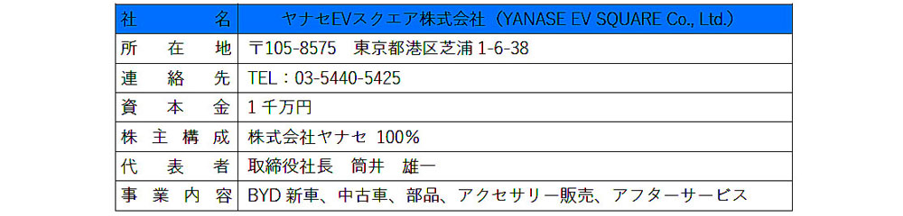 こうした状況を踏まえ、ヤナセもこの機に「ヤナセEVスクエア」におけるBYDの取り扱いを通じて、新車販売、中古車販売からアフターセールスまで含めたEVの安定的かつ持続可能なビジネスサイクルの定着・拡大を日本市場で実現することを目指すとしている。
