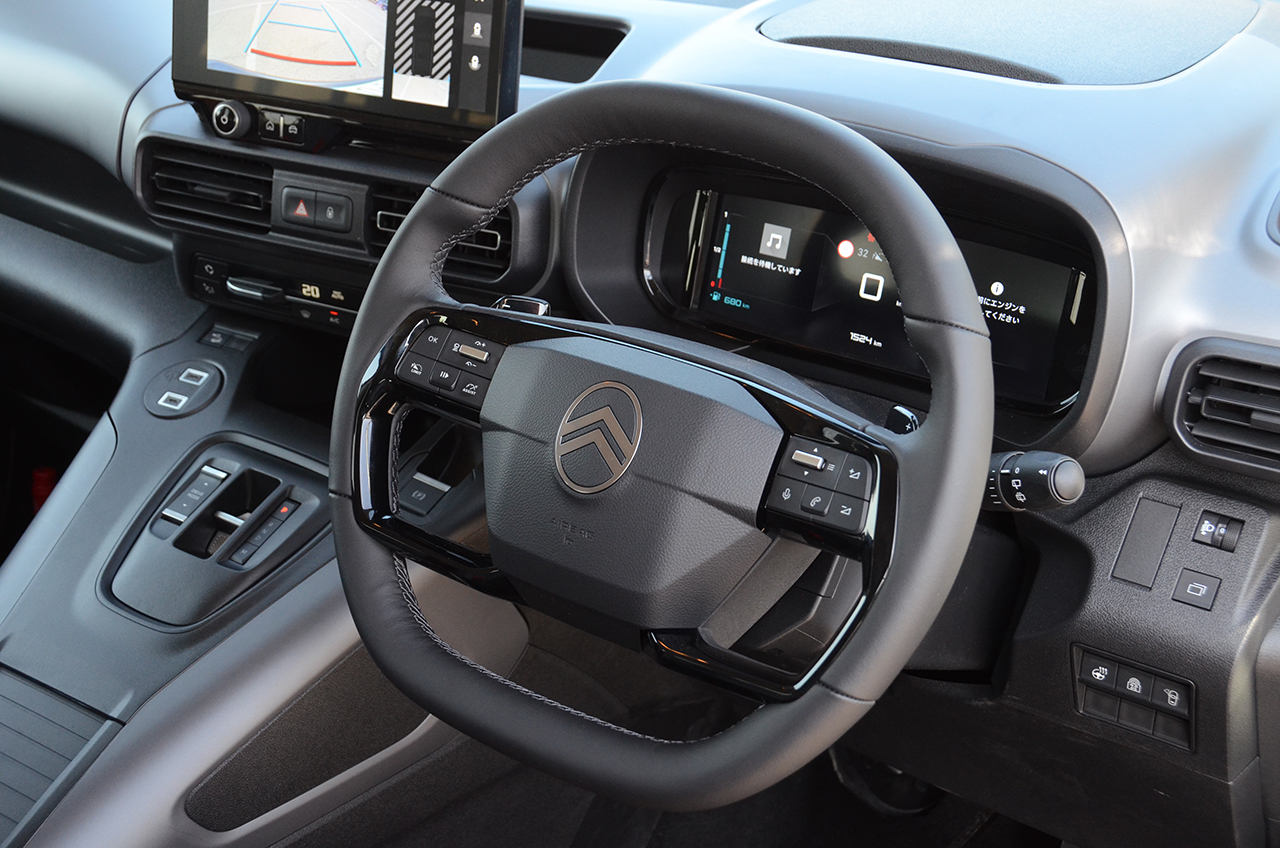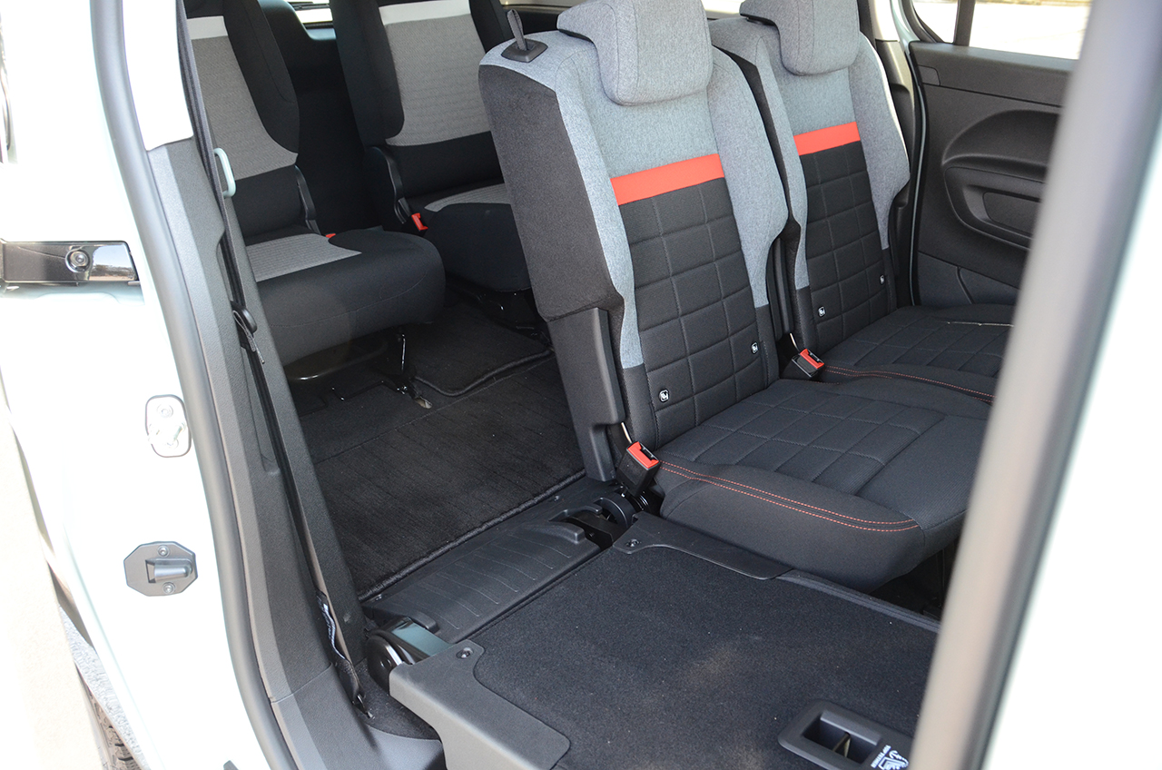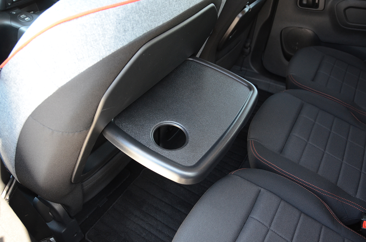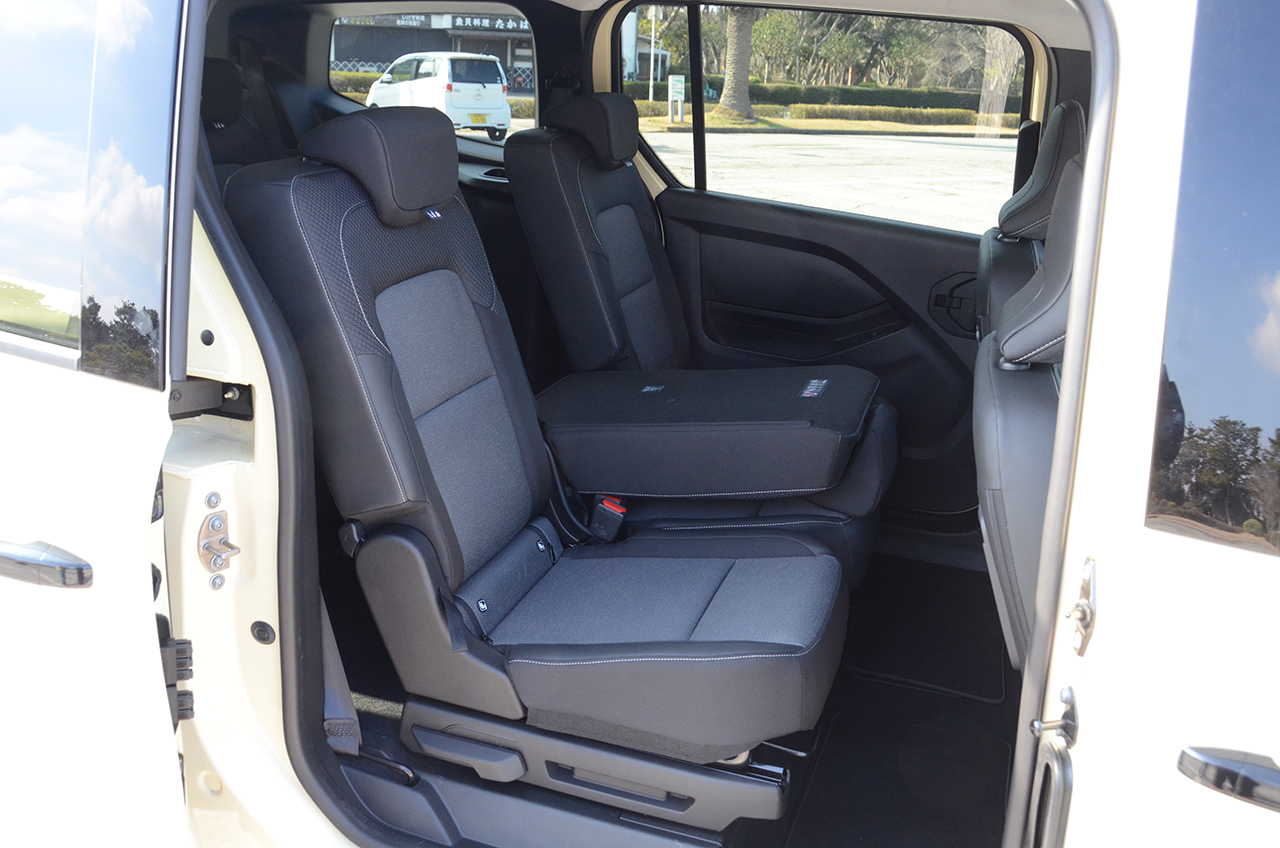 グランカングーは商用車を意識した外観だが、インテリアは快適な仕様で乗用ライク。またシトロエンはデザインへのこだわりがシートデザインにも出ている