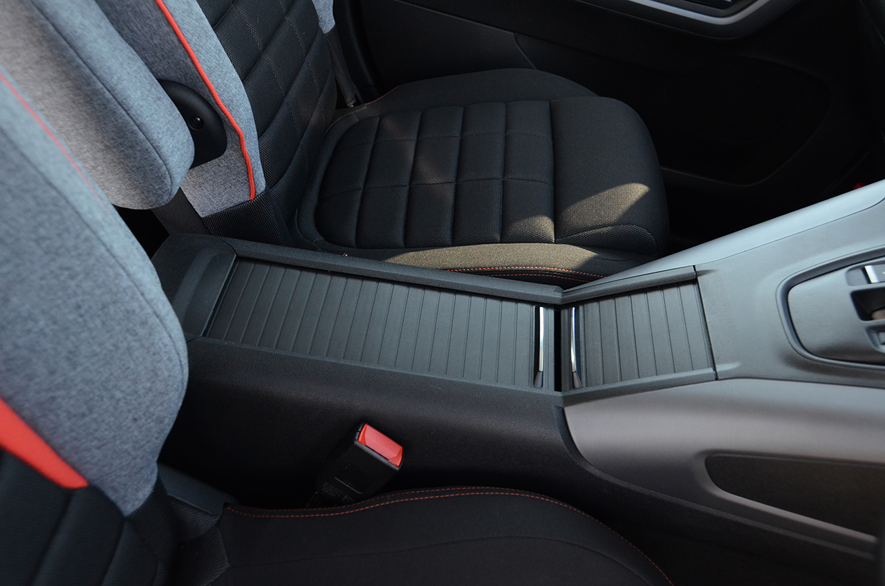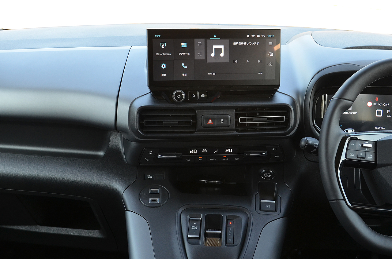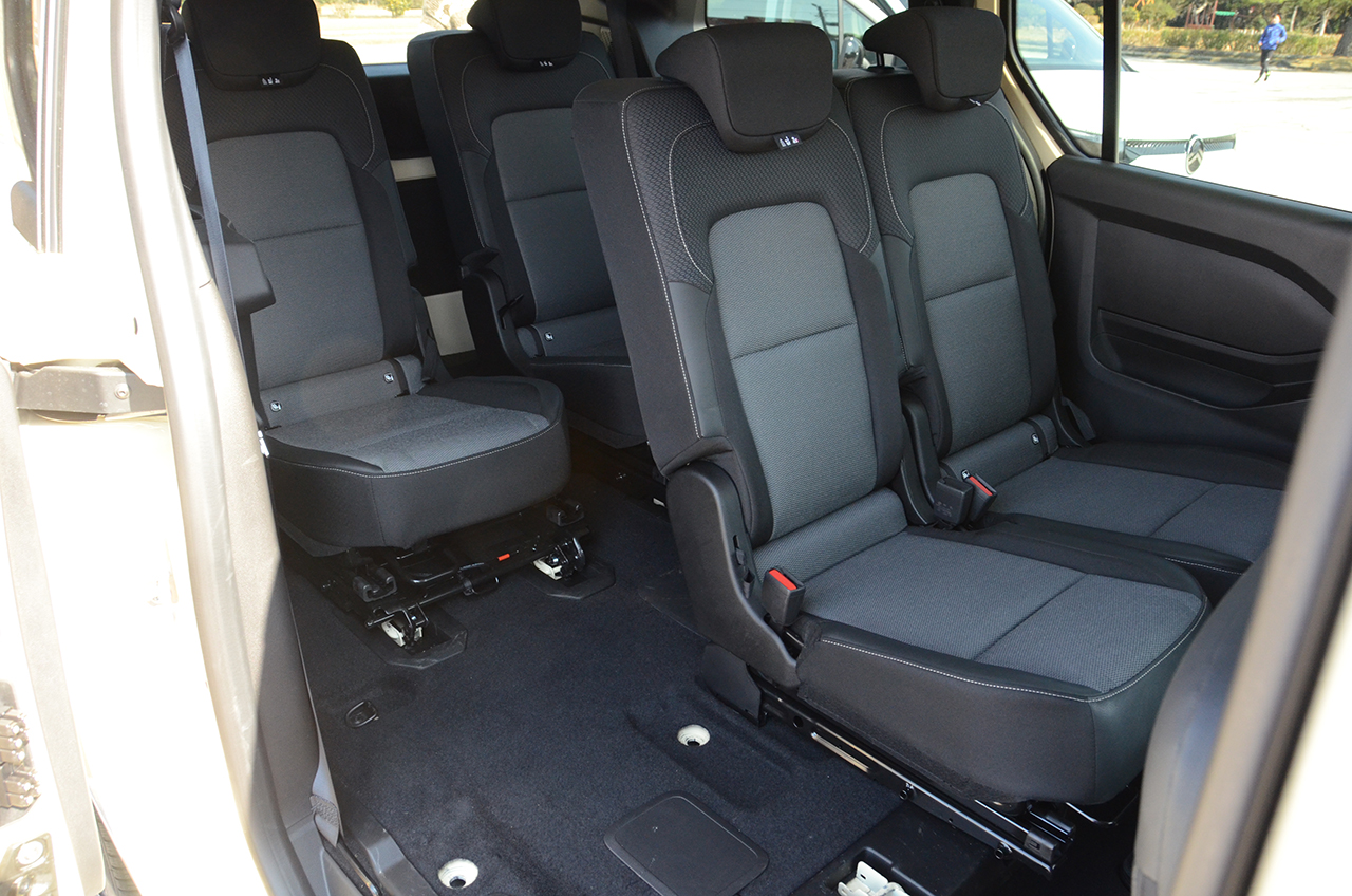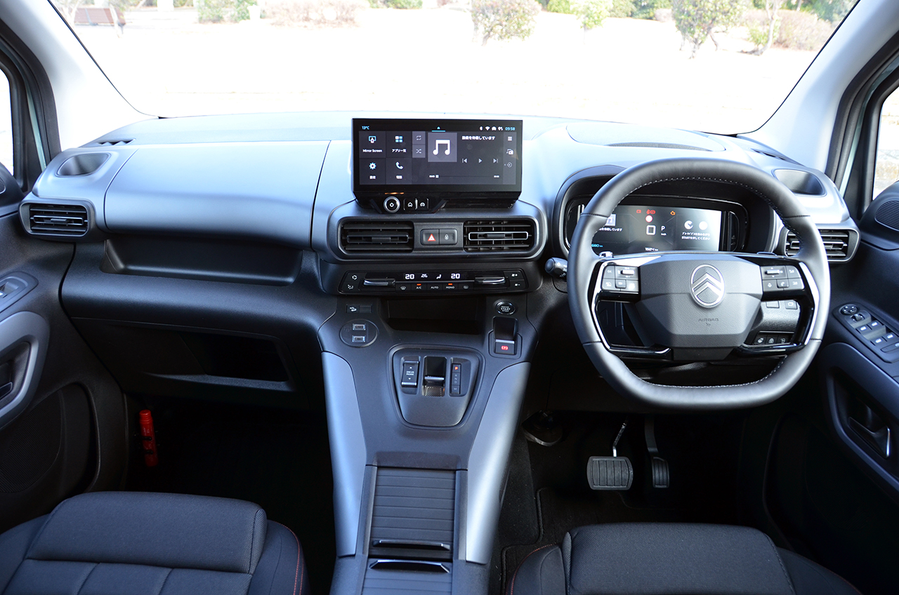 グランカングーは商用車を意識した外観だが、インテリアは快適な仕様で乗用ライク。またシトロエンはデザインへのこだわりがシートデザインにも出ている