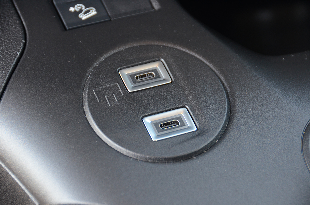 2列目センターシートはダイブダウン式とシートバックだけ倒れるタイプの違い。また2列目にはトレイも装備されるがどちらも華奢なつくりで軽い物しか置けない。