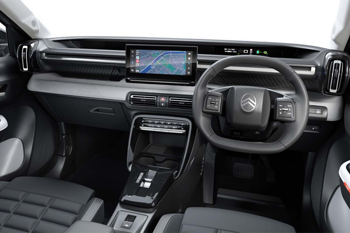 インテリアは、フレンチブランドらしい遊び心が融合したデザインと、シトロエンが誇る快適性が追求されている。ダッシュボードには水平を基調とした、フラットでワイドなインストルメントパネルを配置し、ドライバーの視線移動を最小限に抑えて必要な情報を表示するなど、運転に集中できる設計だ。さらに、ユニークなデザインが随所に施され、遊び心と心地よさが共存するシトロエンならではの室内空間となっている。
