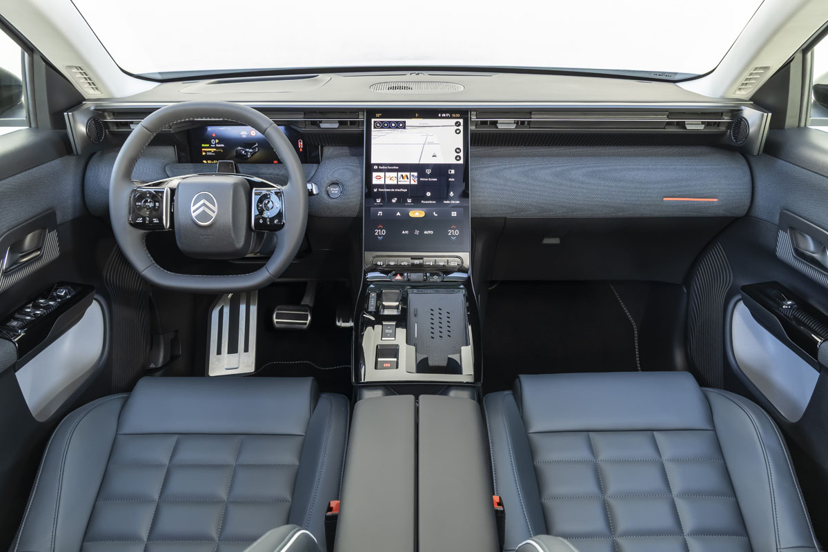 そして最大の特長のひとつが、リヤサイドに空力性能の向上にも寄与する「Citroen Light Wings」の造形を採用したことだ。このデザインは「Oli コンセプト」で提案された空力思想を受け継ぎ、空力性能を向上させる実用的な形状として採用されている。高速走行時の安定感を向上させ、同時に美しく洗練されたリヤビューとしてまとめている。