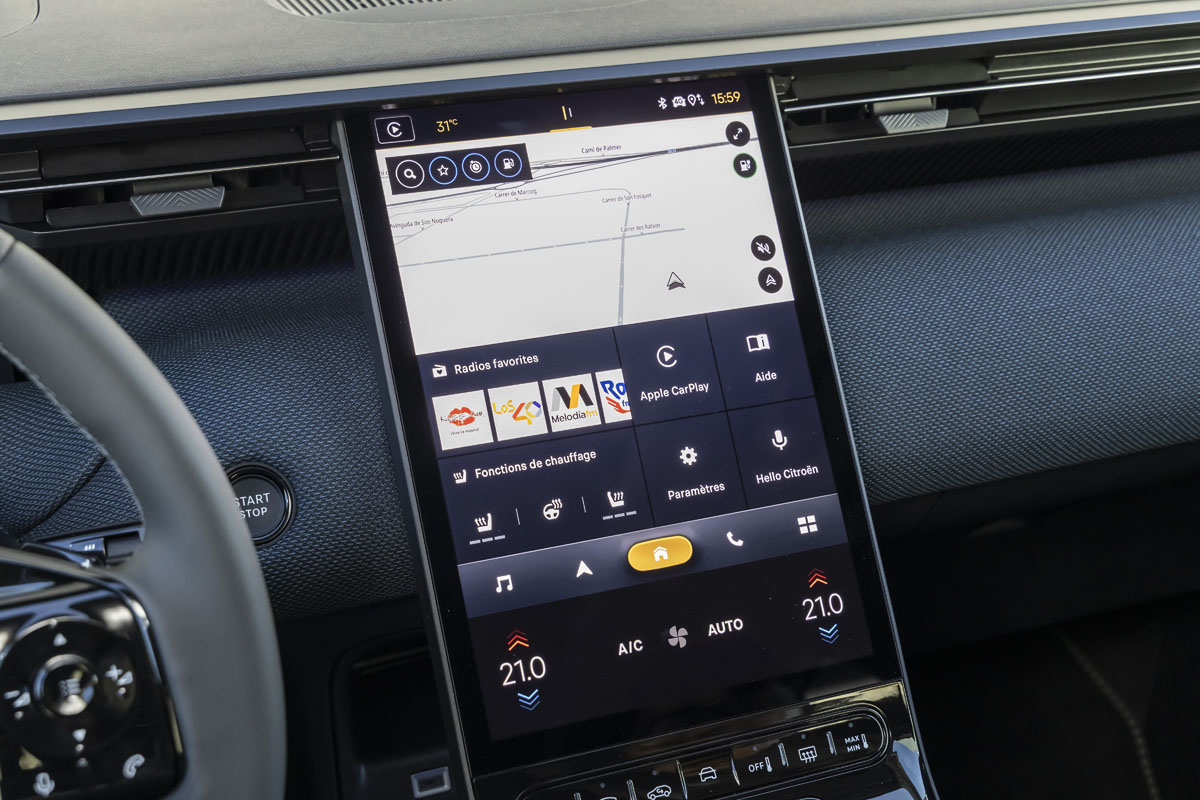 インテリアは、インスツルメントパネル中央からセンターコンソールに接続されるステランティスで最大級となる13インチの縦型「ウォーターフォールスクリーン」を配置し、ナビゲーション、メディア、車両設定、空調操作などを集約し直感的な操作が可能にしている。