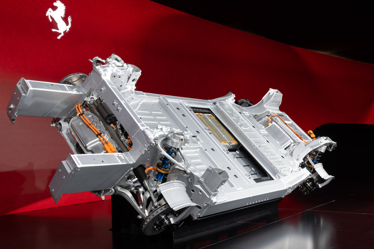 フェラーリ本社は2025年10月8日、9日にマラネロでフェラーリ初となる量産仕様の電気駆動スポーツカー「エレットリカ」のプラットフォーム/シャシーなど主要なコンポーネンツを初公開した。