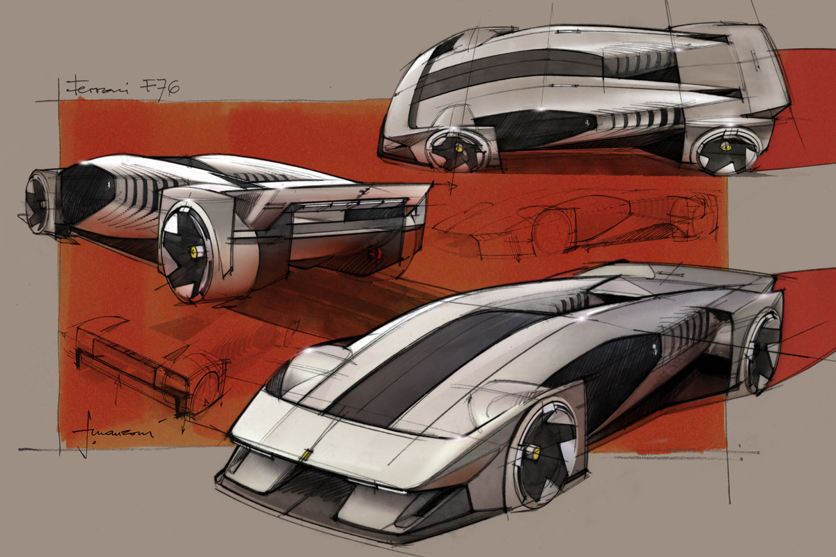 「F76」は実際に生産されるモデルではなく、フラヴィオ・マンゾーニが率いるフェラーリ・スタイリングセンターが手掛け、レースの伝統や技術、デザインの技を融合させた革新的なバーチャル・プロジェクトだ。