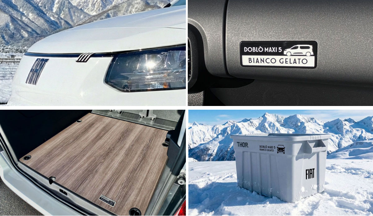 フロントとインテリアに装着した専用エンブレムは、耐久性と質感に優れたハイボスカル素材を使用し、特別感を強調。さらに、車内設置の収納箱としてはもちろん、アウトドアなど幅広いシーンでも活躍するFIAT×THORオリジナルギアボックスが付属している。