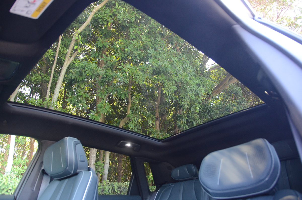 キャビン後席は予測したようにクラス最高レベルの広さとレッグスペースがあり、快適そのもの。ルーフの大部分を占める広大なガラスルーフはキャビンを明るく開放的にし、後席からの景色はまるでオープンカーのようだった。