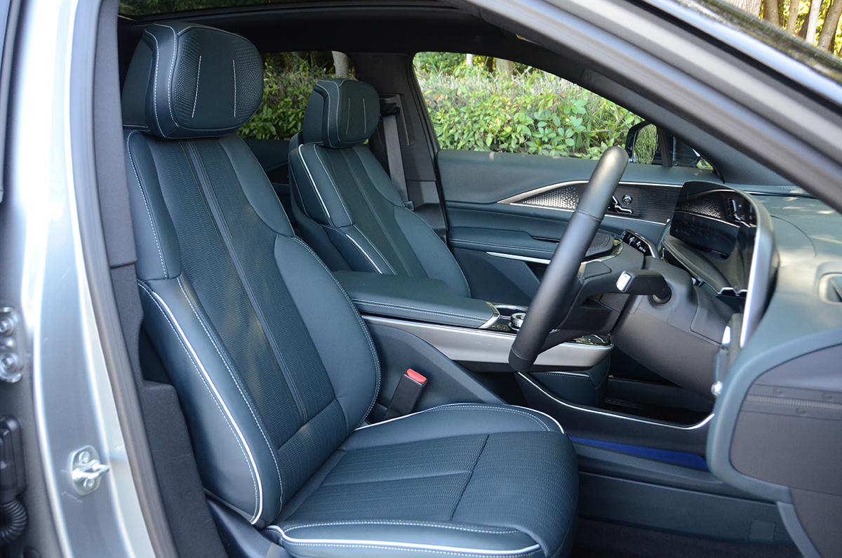インテリアでは広々空間とガラスの天井、大きなシート、そして細部に至る豪華さの演出で悦に浸り、動き出せば、驚くほどの高い静粛性と力強いトルクフィール。510kmもの航続距離も安心材料だ。