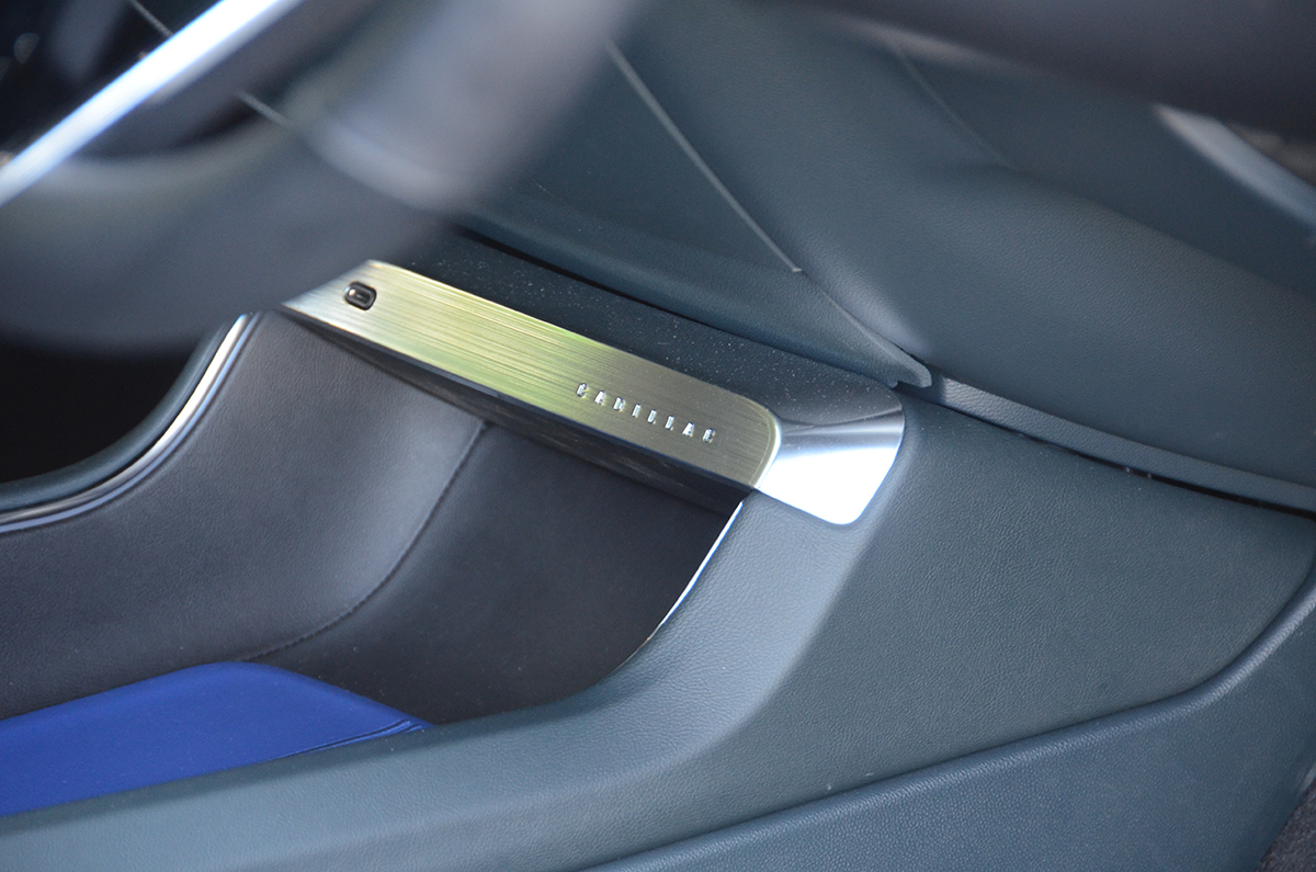 インテリアでは33インチのカーブドディスプレイが目に飛び込み、フローティングするセンターコンソルにはローレット加工されたロータリー式コントローラーを配置。そのコントローラーはピアノブラックパネルで囲われ明確な存在感を演出。すぐ脇にウッドパネルを持ってくることで高級感と伝統美、そして先進感を鼎立させている。