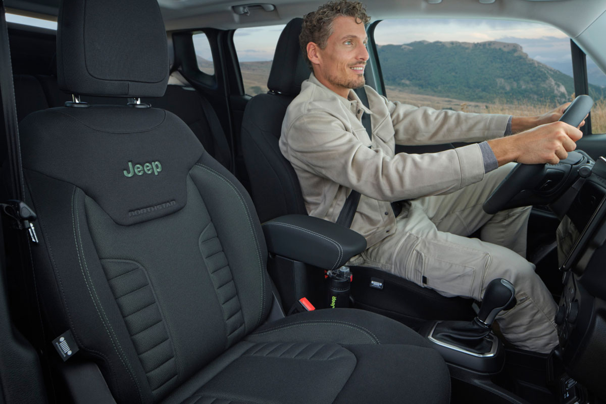 今回の限定車「レネゲード North Star Edition」は、ジープならではの冒険心と開放感を継承しながら、力強さの中に洗練されたスタイルを融合。最大の特長は、ジープで初めて採用した革新的な高強度ファブリックの専用シートで、標準的なファブリックシートと比べて約3倍の耐久性を実現している。