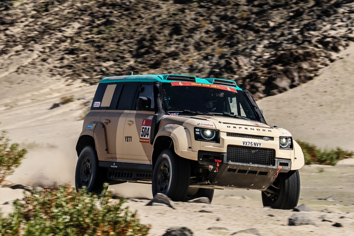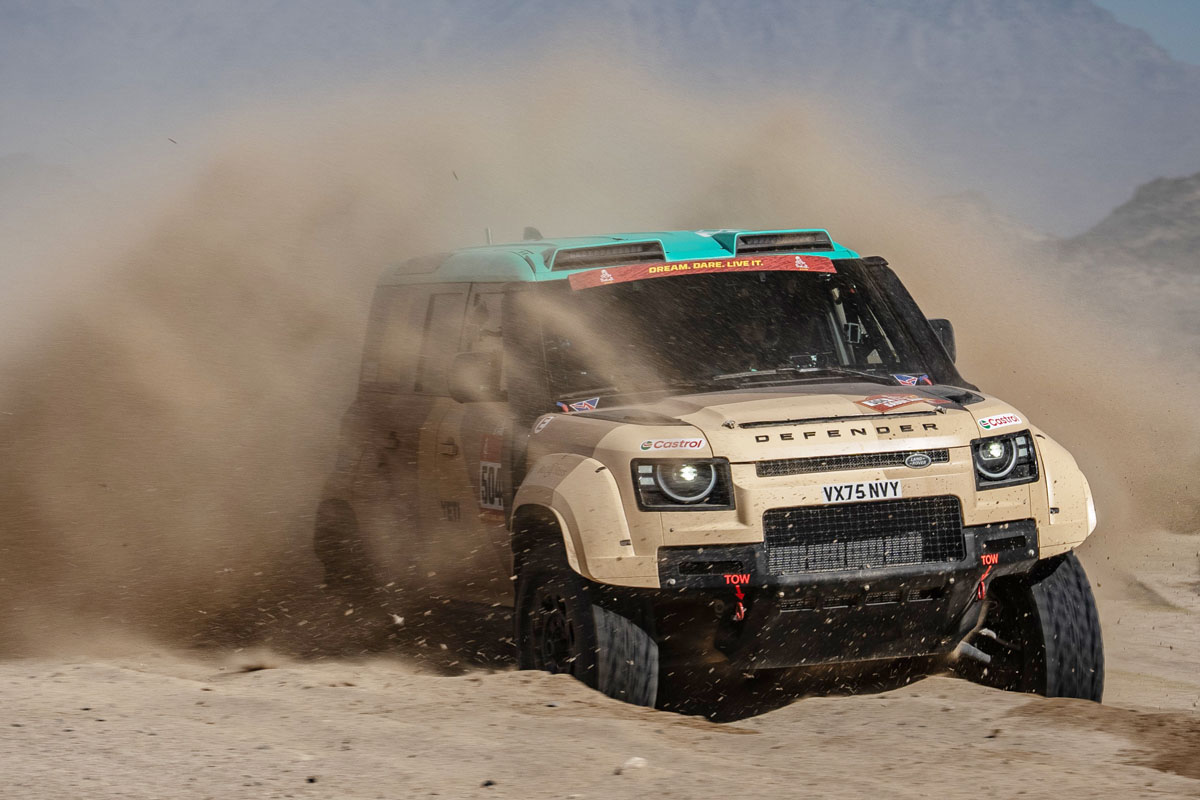 世界で最も過酷なラリーレイドは、ダカールのレジェンドと称されるステファン・ペテランセル/ミカ・メッジェ組、不屈のロカス・バチュスカ/オリオール・ビダル組、アメリカ人女性ドライバーの先駆者であるサラ・プライス/ショーン・ペリマン組が出場。マシンは「ディフェンダー ダカール D7X-R」だ。