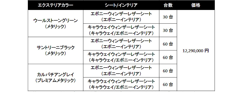 エクステリアカラーは2026年モデルから追加になったウールストーングリーン(メタリック)に加え、人気の高いサントリーニブラック(メタリック)、カルパチアングレイ(プレミアムメタリック)の3色展開で、インテリアはエボニーまたはキャラウェイウィンザーレザーシートが用意されている。