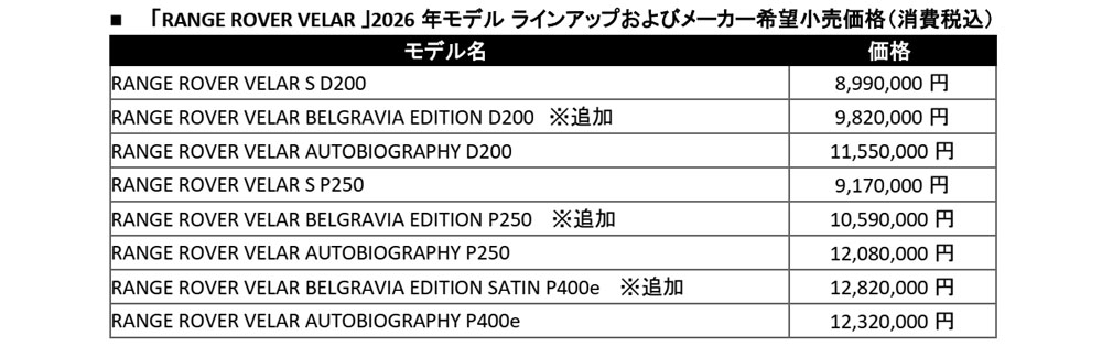 ジャガー・ランドローバー・ジャパンは2026年4月3日、「レンジローバー ロンドンエディション」シリーズの第1弾として、「レンジローバー ヴェラール ベルグレイヴィア・エディション」、「レンジローバー イヴォーク ホクストン・エディション」を発表し、2026の受注を開始した。