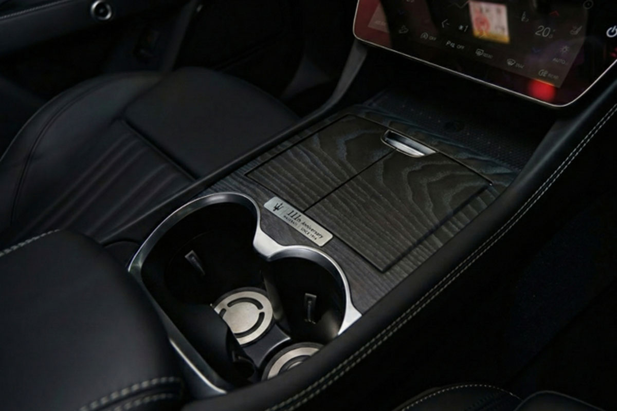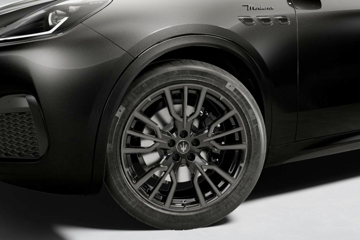 ボディカラーは「ネロ テンペスタ」のメタリックペイントを採用し、純正アクセサリーであるセルフレベリング センターキャップを組み込んだグロッシーブラックの21インチ「エテレ スタッガード」ホイールを装着している。「Maserati」、「Grecale」のリヤバッジもブラックで統一されている。