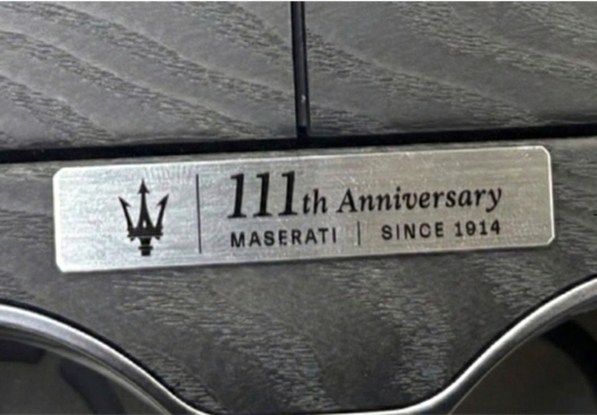 インテリアカラーは「ネロ(グリージョ ステッチ)」を採用。センターコンソールには創業111周年を記念した専用プレートを配し、アニバーサリーイヤーのモデルにふさわしい特別感も演出されている。