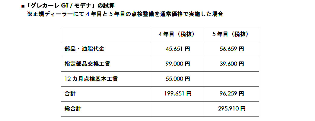 マセラティはグローバルで、新車登録から3年間は標準メンテナンスプログラムが付帯しており、定期点検や指定交換部品、油脂類、12カ月点検工賃を無償で提供している。