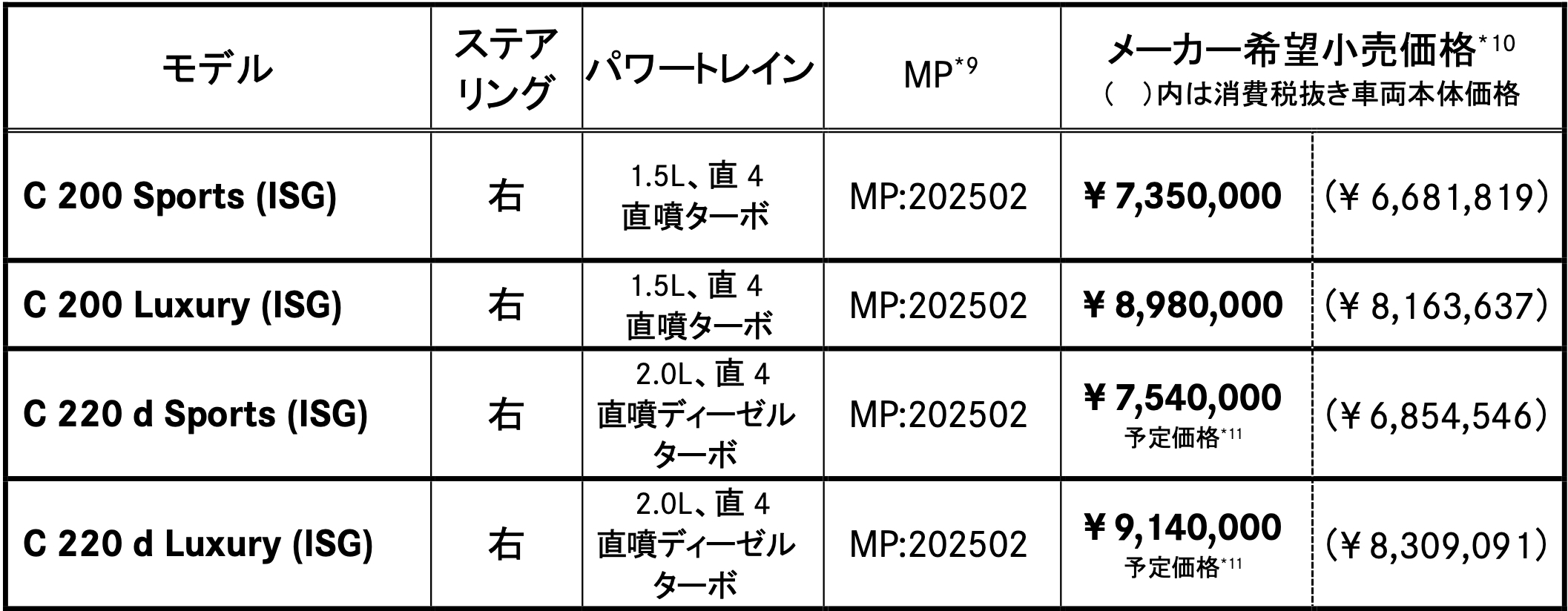メルセデス・ベンツのコンパクトモデルでは装備を見直し、お得な価格設定をしたUrban Starシリーズがラインアップし好評を得ているが、DセグメントのCクラスも同様に装備の見直しをし、ラインアップの変更を行なっている。