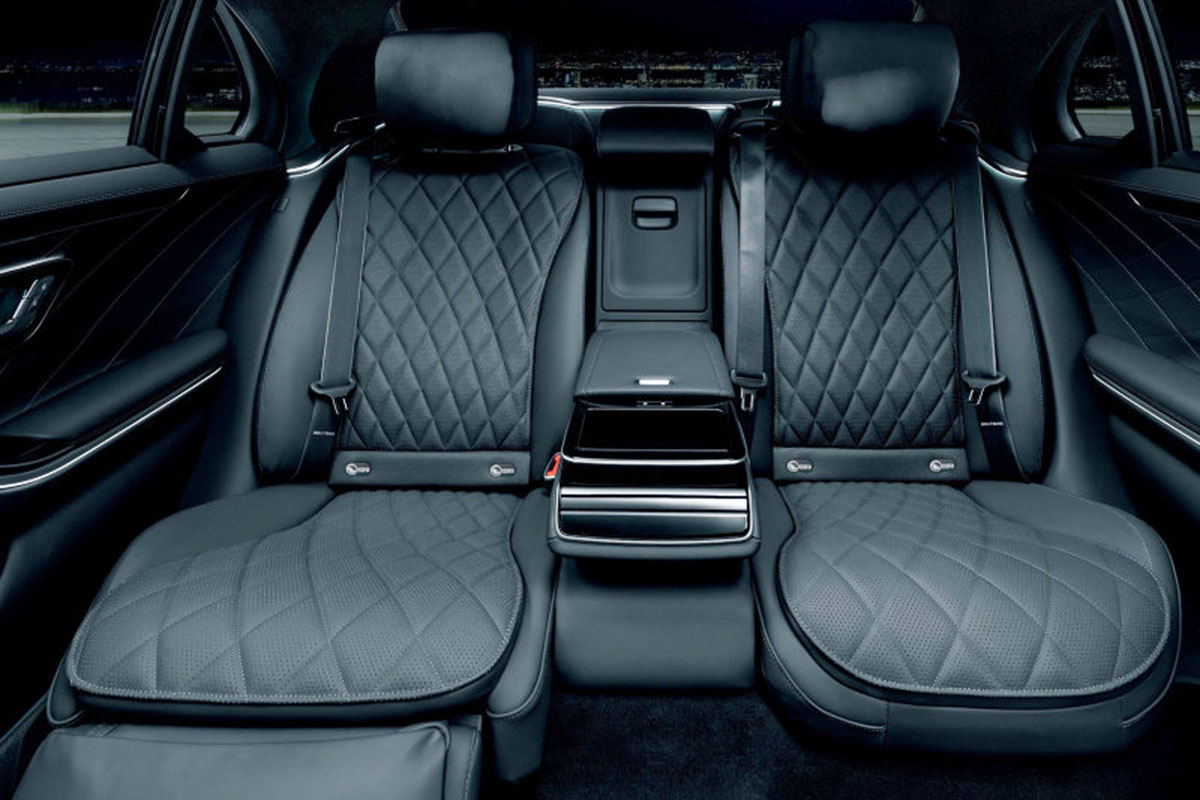 また、通常モデルではオプション設定のリヤコンフォートパッケージを標準装備しており、後席の安全性と快適性が向上したショーファー仕様に仕上げている。さらに助手席側後席がフットレスト付きエグゼクティブシートとなり、ふくらはぎリラクゼーションが装備されるほか、後席左右にワイヤレスチャージング機能や、左右独立してエンターテインメントを楽しめる11.6インチのMBUXリヤエンターテインメント・システムが追加される。さらに、通常モデルでは有償オプションとなる「SRSリヤエアバッグ」も標準装備されている。
