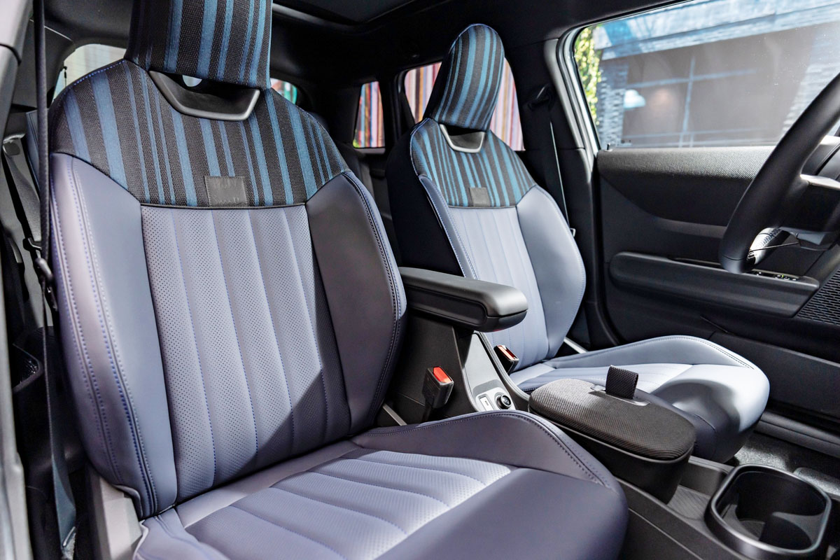 インテリアは、ダッシュボードとドアパネルに採用されたニット素材はブラックで、ダッシュボードの特別デザインであるストライプ・パターンのポール・スミス・ファブリックがアクセントになっている。べスキンを使用したナイトシェード・ブルーのスポーツ・シートは、ショルダーとヘッドレスト部にニット素材のテキスタイルを使用している。