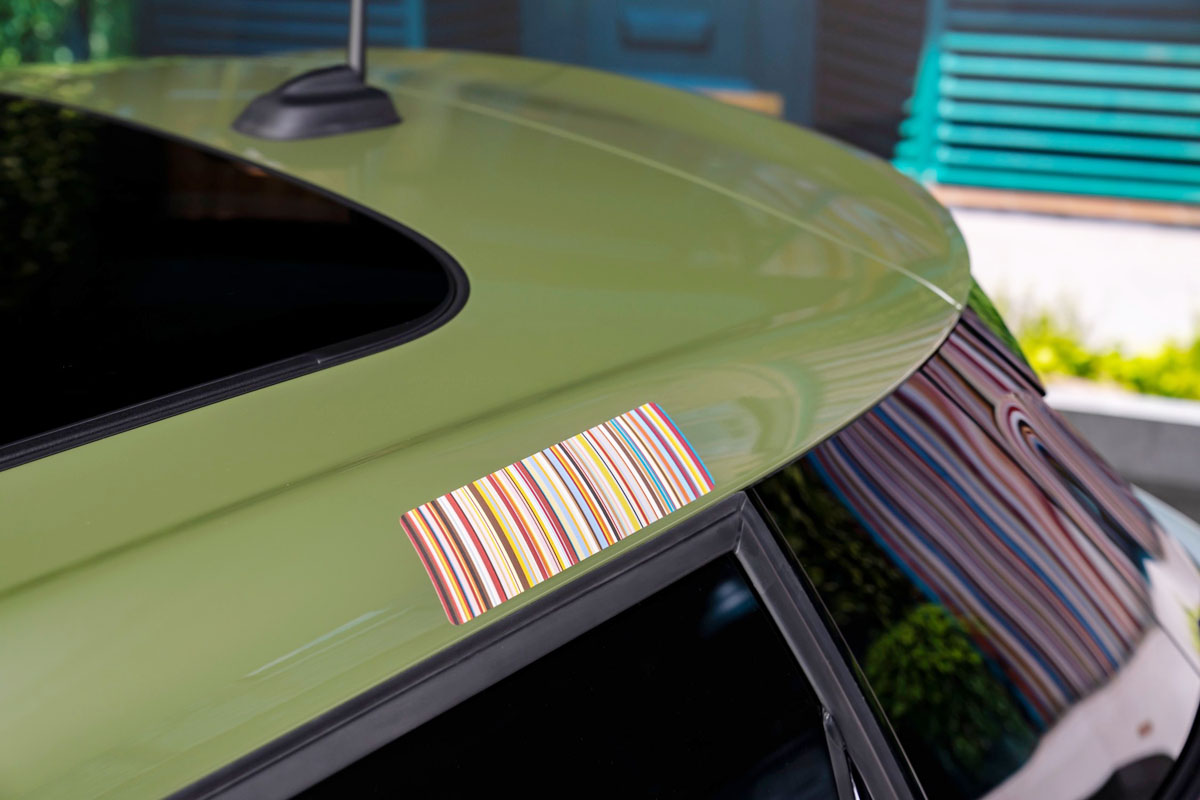 さらにデザイナーであるポール・スミスのアイコンである「シグニチャー・ストライプ」が、ノッティンガム・グリーンのルーフ後部(運転席側)に施されている。MINI クーパー・コンバーチブル ポール・スミス・エディションの場合は、ブラックのソフトトップとなっている。