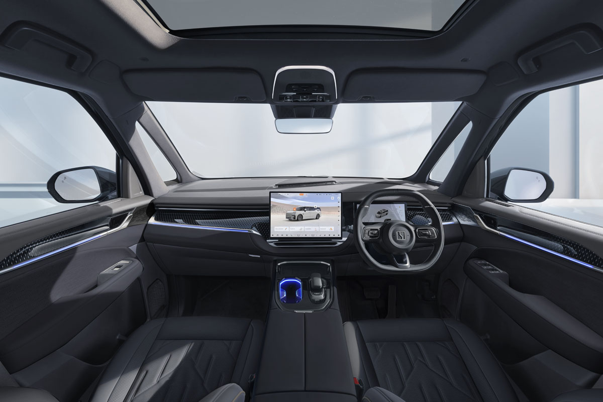 EVのメリットである室内の静粛性も傑出しており、120km/h走行時でも64.5dBという優れた静粛性能を実現。高速巡航時でも会話や音楽を快適に楽しめ、高級MPVにふさわしい車内環境となっている。また大型パノラマガラスルーフが自然光を取り込み、車室内を明るく開放的に演出している。