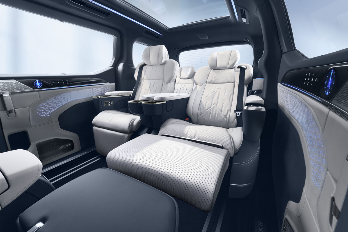 インテリアはプレミアムMPVにふさわしく、2列目シートはマッサージ機能付きキャプテンシートを装備。レッグレストやシートヒーター、ベンチレーション、ヘッドレストスピーカーなど、多くの快適機能を標準装備している。