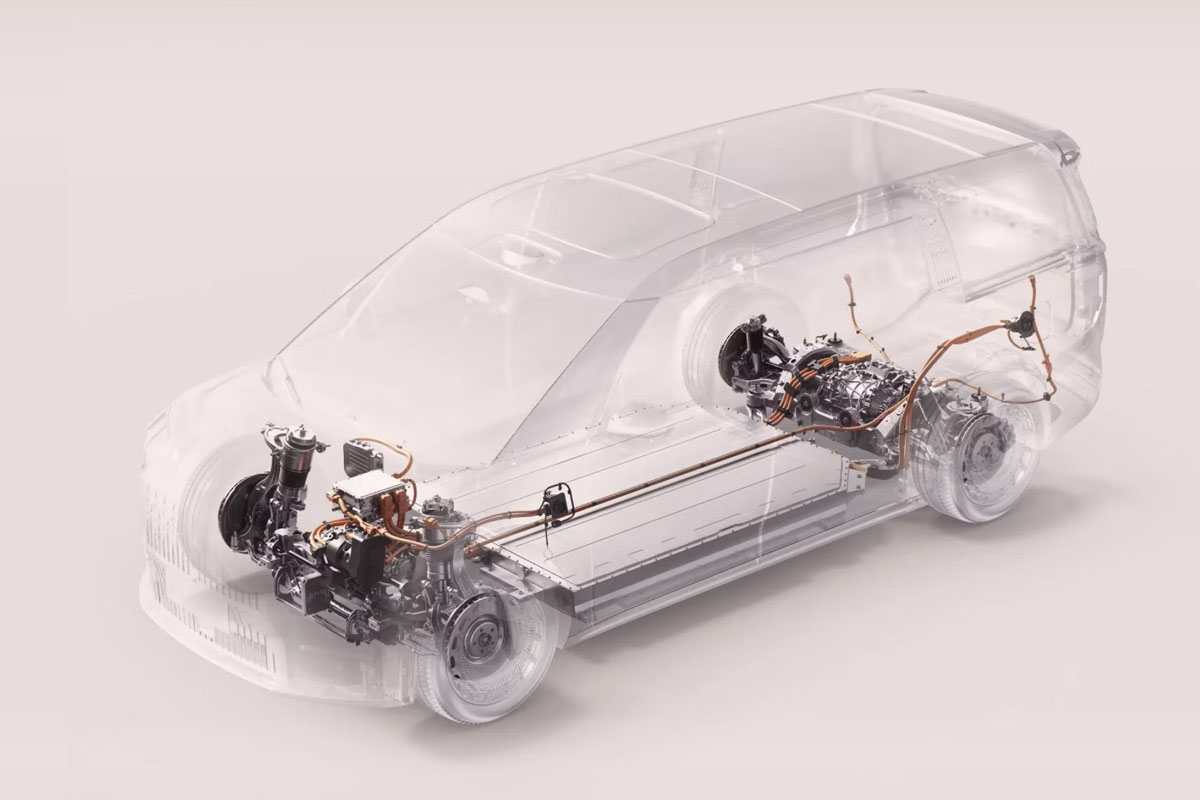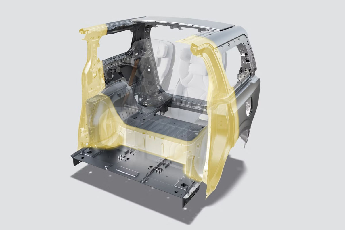 ボディ構造では、全長1.4m、全幅1.6mという大型のリヤアンダー・セクションは世界最大級の総アルミの超大型ギガプレス製としており、高剛性、耐衝突性能を実現している。
