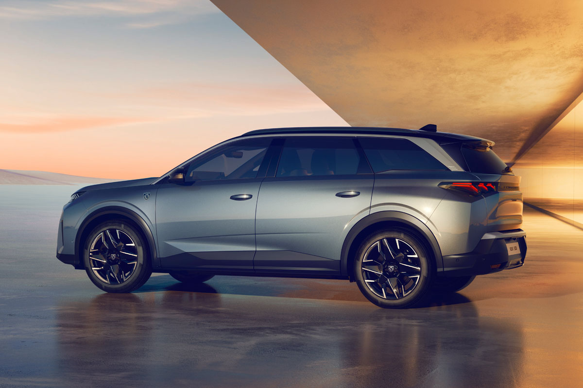 リヤビューは、3列シートに対応した高めの造形を採用し、7人乗りSUVとしての機能性を確保しながら、プジョーらしい洗練された表情を備えている。