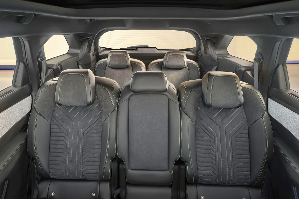 インテリアのパッケージングは、広い空間を柔軟に使いこなせる3列/7シートのレイアウトで、移動を快適にする装備を組み合わせている。2列目シートは40:20:40の独立可倒式で、前後15cmのスライドやリクライニング調整を備え、乗る人がそれぞれに心地よい姿勢を選ぶことができる。