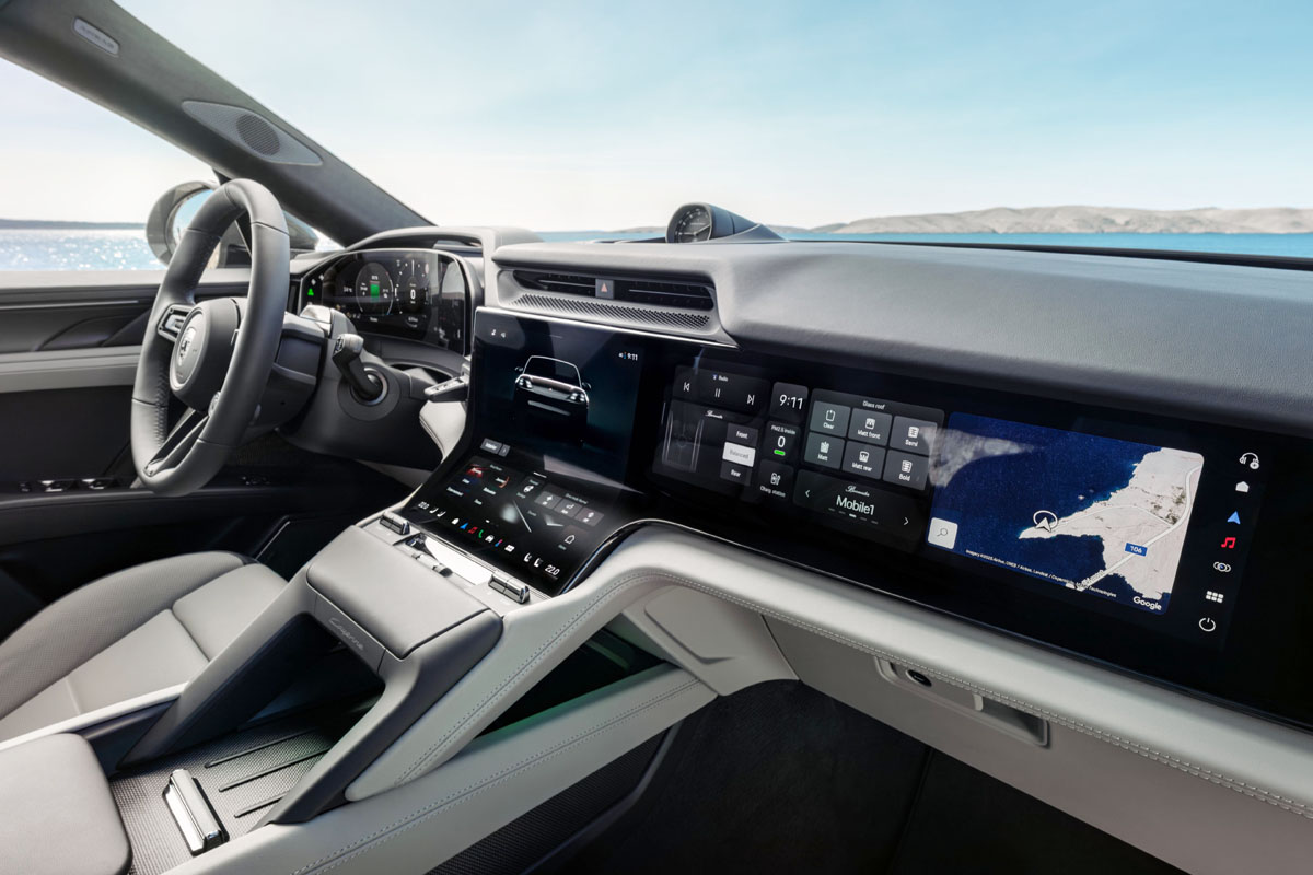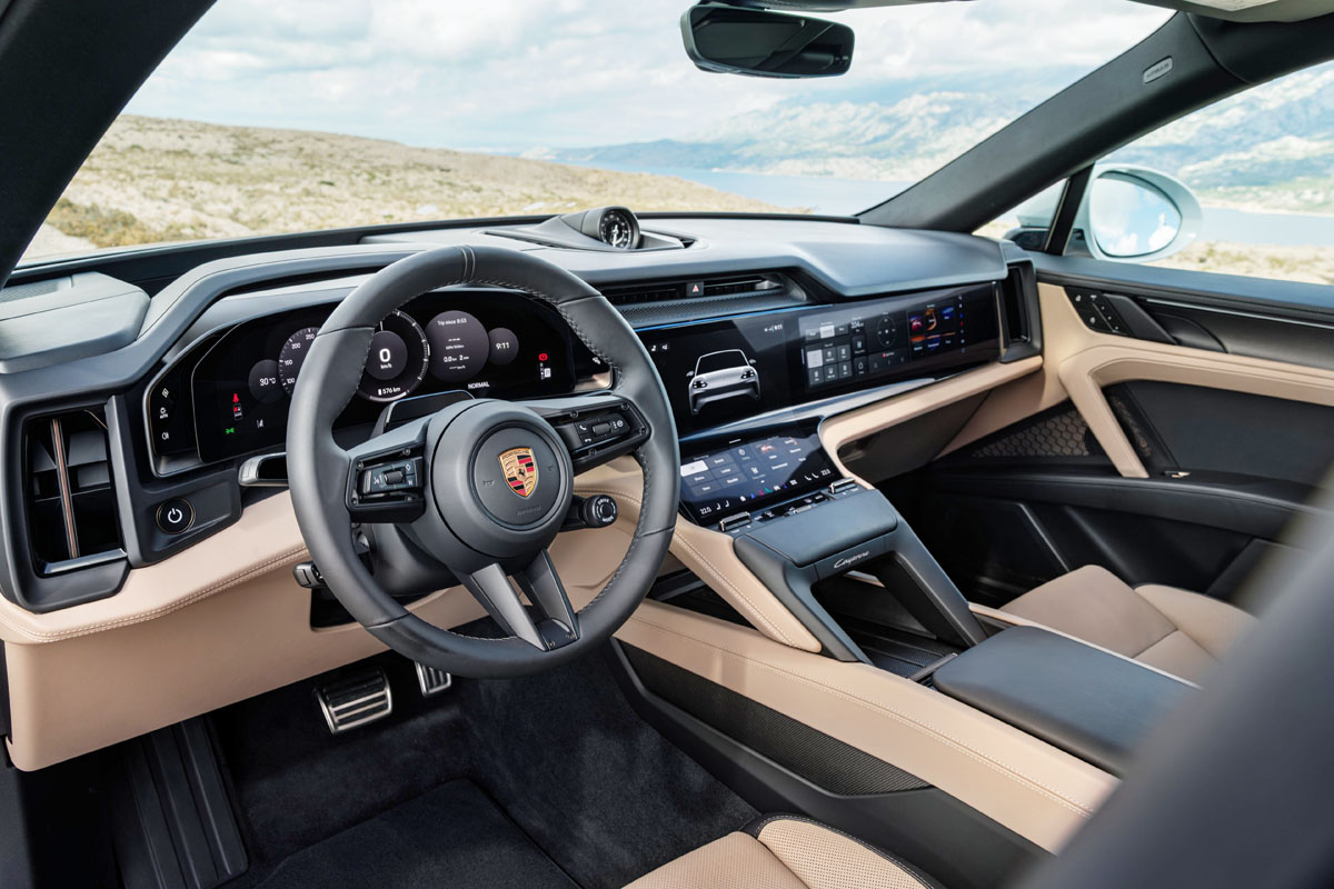 インテリアはフルデジタルメーターパネル、大型横長センターディスプレイ、助手席側ディスプレイ、さらにオプションのARヘッドアップディスプレイを組み合わせた広大なディスプレイ空間を採用。「カイエンSUV」と同様のデジタルコクピットとなっている。