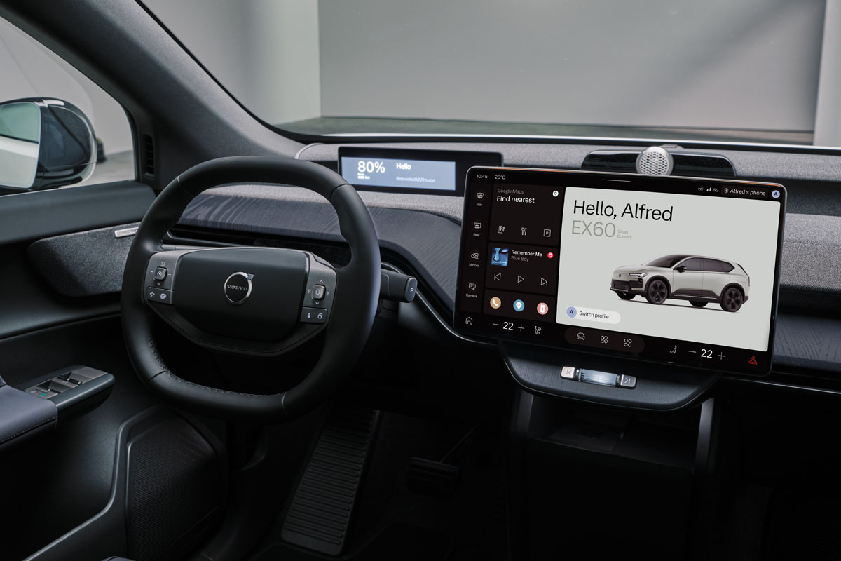 その結果、ボルボ史上最も応答性が俊敏なインフォテイメントが実現しており。シームレスで遅延のないシステムにより、ディスプレイ画面は素早く反応し、地図は瞬時に読み込まれ、音声アシスタントは乗員の意図をより正確に理解する。