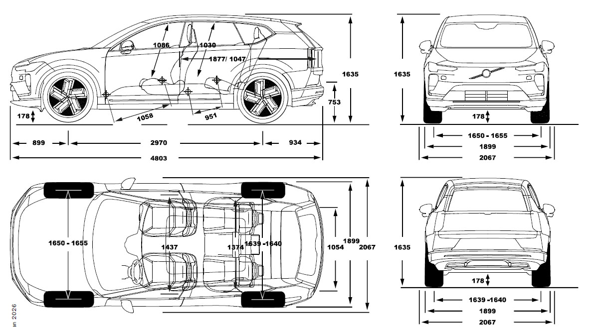 「EX60」のボディサイズは、全長4803mm、全幅1899mm、全高1635mm、ホイールベース2970mmで、グローバル規準のDセグメントだ。そしてクロスオーバーSUVであるため最低地上高は178mmと高めに設定されている。