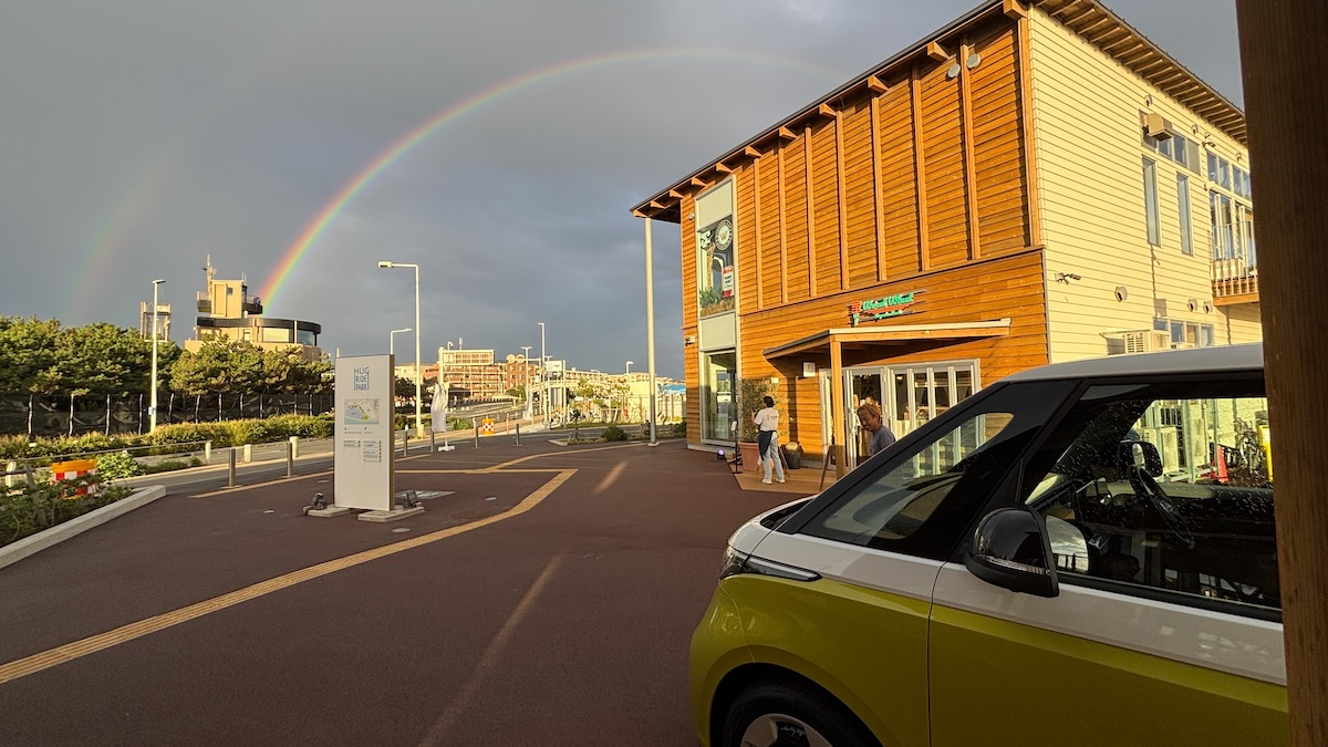 こんな綺麗に、はっきり半円を描く虹なんて、見たことない!こんなアイコニックで可愛いクルマ見たことない!ということで「watch see look」な試乗ドライブでした。