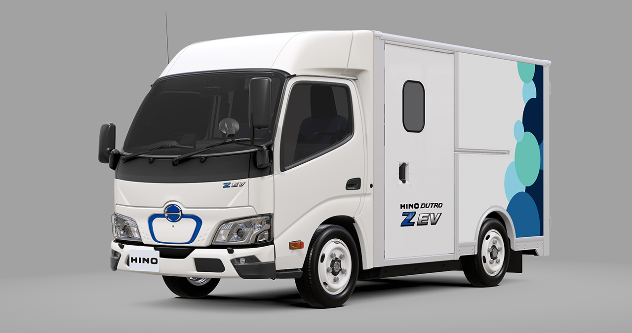 日野デュトロZ EVは2022年6月から発売されている小型トラック。すでに1600台以上が販売されており、事業者の集配等に利用されている。前輪駆動でバッテリーを車体中央に搭載し、低床構造の小型トラックだ。普通免許で運転ができ、ラスト1マイルに向けたCN社会に向けたBEVトラックだ。