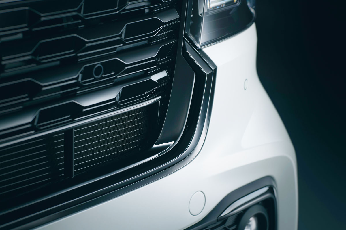 エクステリアは、フォグライト・ガーニッシュやカスタムデザイン・フロントグリル、リヤ・ライセンスガーニッシュ、アルミホイールにベルリナブラック塗装を、ドアハンドルやドアミラー、エンブレムにクリスタルブラック・パール塗装施すことによって、より引き締まった印象となっている。