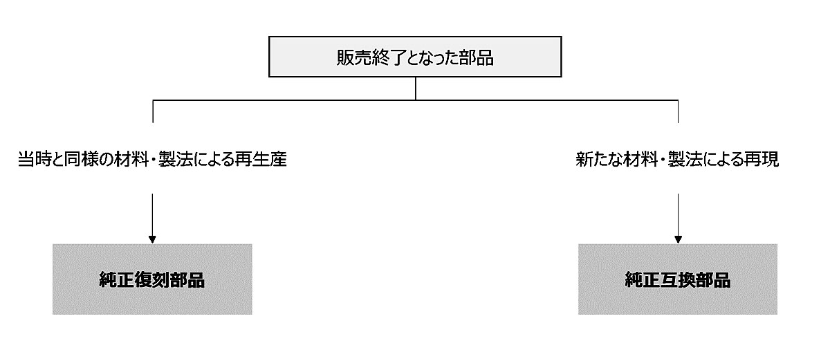 そうした状況を解決するため、部品関連の取引先との新たな協力体制の構築や技術の進化、新たな材料や製法の採用により、これまでに販売終了となっていた部品を新たに「純正互換部品」として再開発し復刻することになる。