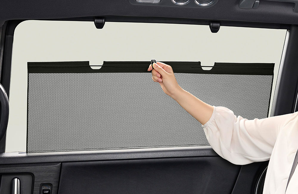 今回の一部改良では、市場からの要望が多かった2列目の大型ロールサンシェードを全グレードに標準装備とした。