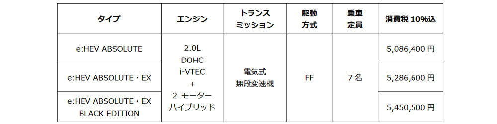 また、日本初投入となるボディカラー「ダイヤモンドダスト・パール」をe:HEV ABSOLUTE・EX BLACK EDITIONに追加設定するとともに、各タイプのカラーラインアップを一部変更している。