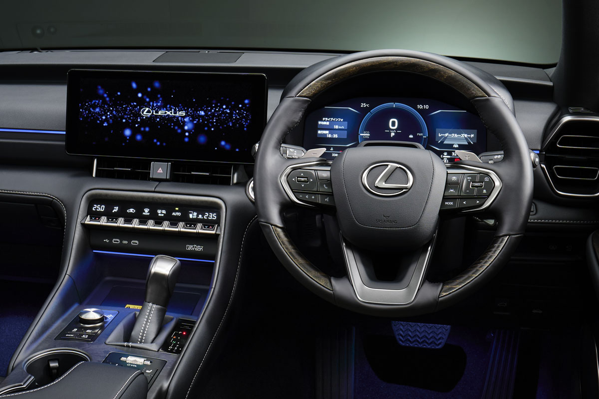 そして、Fスポーツをベースとする特別仕様車Fスポーツ「Mode Black V」も設定している。装備では、ブラック塗装を施したBBS製の鍛造アルミホイール、「LEXUS」ロゴ入りのレッドブレーキキャリパー、ウルトラスエードのシートおよびセンターコンソール、ドアトリムという仕上げとなっている。