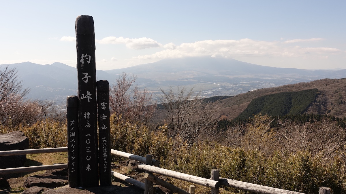 芦ノ湖スカイラインを御殿場方面に向かうと杓子峠があります、。正面に富士山が見えるんだけど、やっぱり午後はダメだね。